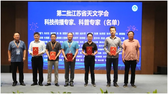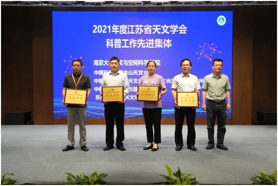 我公司獲得江蘇省天文學會頒發(fā)的2021年度科普工作先進單位銅牌;朱慶生研究員獲得省科協(xié)頒發(fā)的“江蘇省首席科技傳播專家證書”和省天文學會2021年度科普工作先進個人證書;趙金標工程師代表公司天文科普傳播團隊,獲得江蘇省天文科普專家證書。