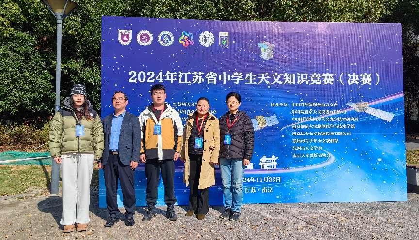 在這次競(jìng)賽中,南京天儀公司特別派出了一支由副總經(jīng)理、江蘇省天文學(xué)會(huì)科普與教育工作委員會(huì)主任朱慶生研究員及4名專業(yè)人員組成的志愿者團(tuán)隊(duì),他們以高度的責(zé)任心和專業(yè)精神,為賽事的成功舉辦貢獻(xiàn)了重要力量。作為考務(wù)組的核心成員,朱慶生研究員不僅參與安排賽事總體考務(wù)、協(xié)調(diào)觀測(cè)賽工作,還積極參加望遠(yuǎn)鏡操作理論答題的批改工作;在頒獎(jiǎng)環(huán)節(jié),他與江蘇省天文學(xué)會(huì)理事長(zhǎng)、南京大學(xué)天文與空間科學(xué)學(xué)院院長(zhǎng)李向東教授,南京大學(xué)天文與空間科學(xué)學(xué)院楊艷副院長(zhǎng)共同為獲獎(jiǎng)學(xué)生、優(yōu)秀指導(dǎo)老師和優(yōu)秀組織單位代表頒獎(jiǎng)。