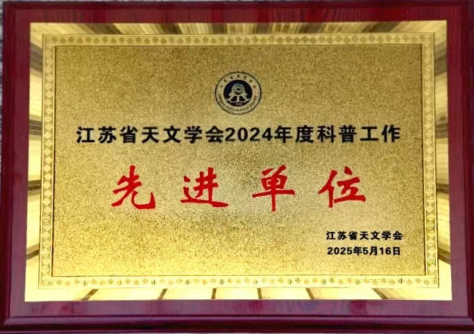 1.?為表彰我公司2024年度在天文科普建設(shè)和教育推廣領(lǐng)域的重要貢獻,學(xué)會授予公司“2024年度科普工作先進單位”榮譽稱號。