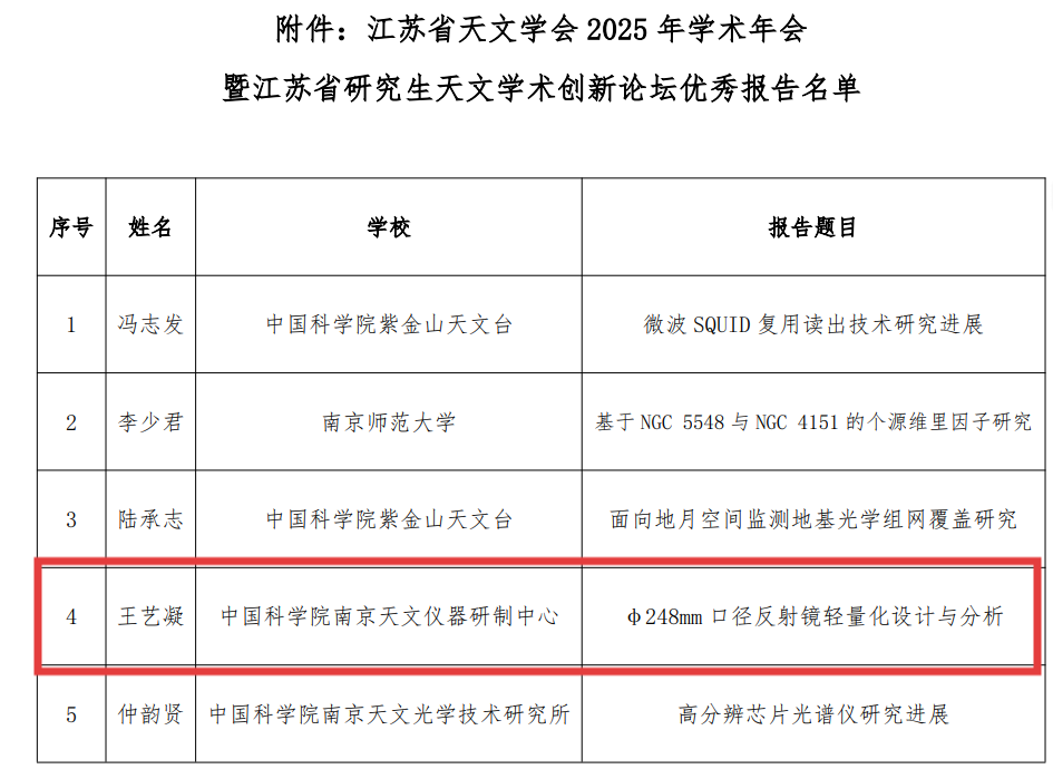 2.?學(xué)會授予董云芬高級工程師 “江蘇省天文學(xué)會青年科技獎”,以表彰其在天文光學(xué)技術(shù)領(lǐng)域的貢獻。